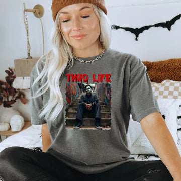 The "Thug Life Horror Movie Legends" T-shirt is the ultimate fusion of horror and street culture. Featuring iconic horror villains reimagined with a gangster twist, this design blends spooky and savage into one bold statement. Made from soft, high-quality fabric, this tee is perfect for horror fans who love a little edge in their style. Wear it and let everyone know—these legends don’t just haunt nightmares, they run the streets!